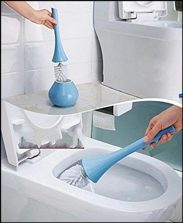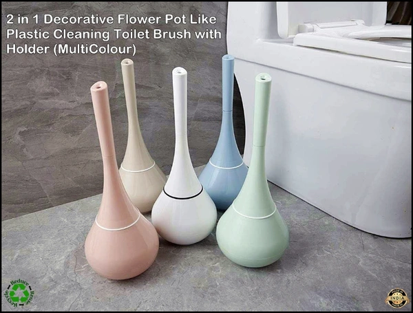2 in 1 Plastic Cleaning Brush Toilet Brush with Holder Look Like Flower Pot (Medium, Multicolour)