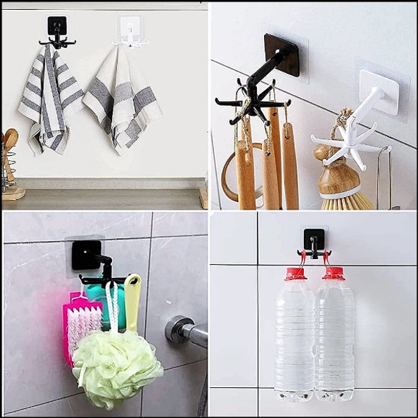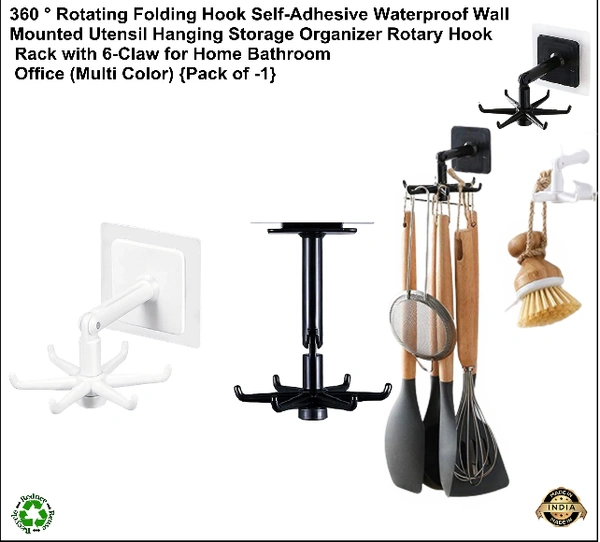 360 ° Rotating Folding Hook Self-Adhesive Waterproof Wall Mounted Utensil Hanging Storage Organizer Rotary Hook Rack with 6-Claw for Home Bathroom Office, Bathroom Cabinet (Multi Color) {Pack of -1}
