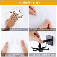 - EASY TO INSTALL: No need to drill, just remove the protective film on sticker, press it to stick to the wall. Put on the rotating hook. The super sticking performance keeps the hook from falling off.