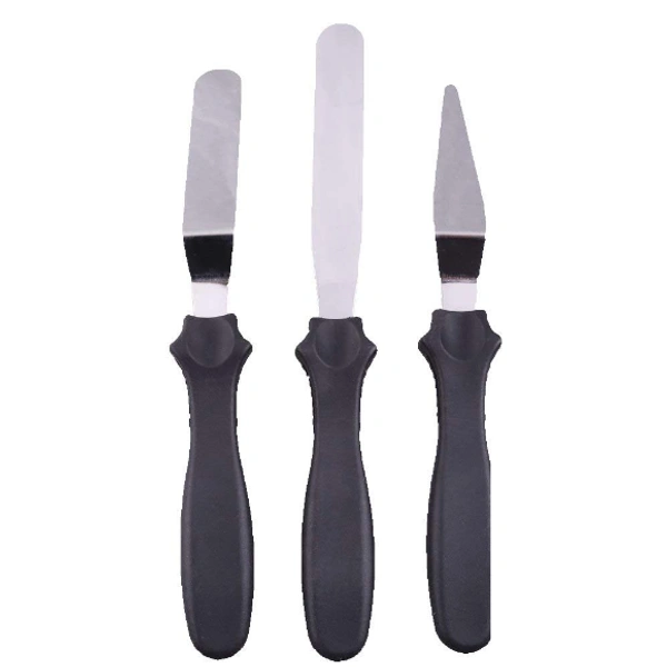 3-in-1 Multi-function Stainless Steel Cake Icing Spatula Knife Set of 3 Pieces (Multicolour)