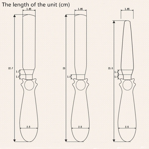 - Angular palette knife blade of 11cm, handle - 11.5 cm, palette knife blade of 11.5 cm, handle - 11.5 cm and triangle angular palette knife blade of 10 cm, handle - 11 cm