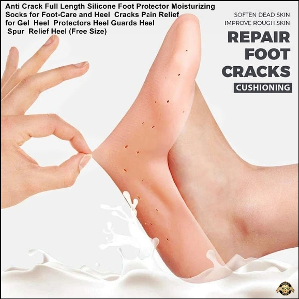 Anti Crack Full Length Silicone Foot Protector Moisturizing Socks for Foot-Care and Heel Cracks,socks for cracked feet,heel pad for heel pain,anti crack heel socks (FULL HEEL)