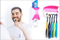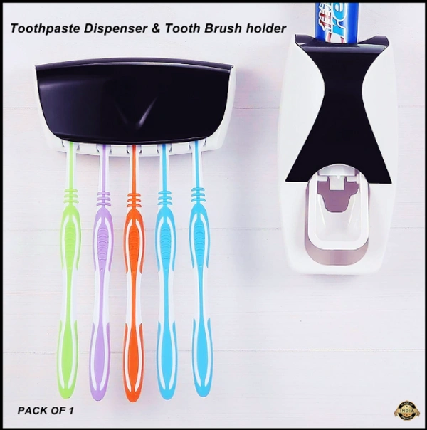 Automatic Dust-Proof Wall Mounted Toothpaste Dispenser with Cover Bathroom Storage Stand (5 Toothbrush Holder) (Multi Color)