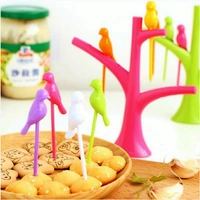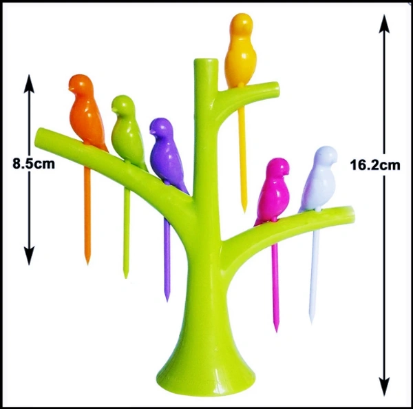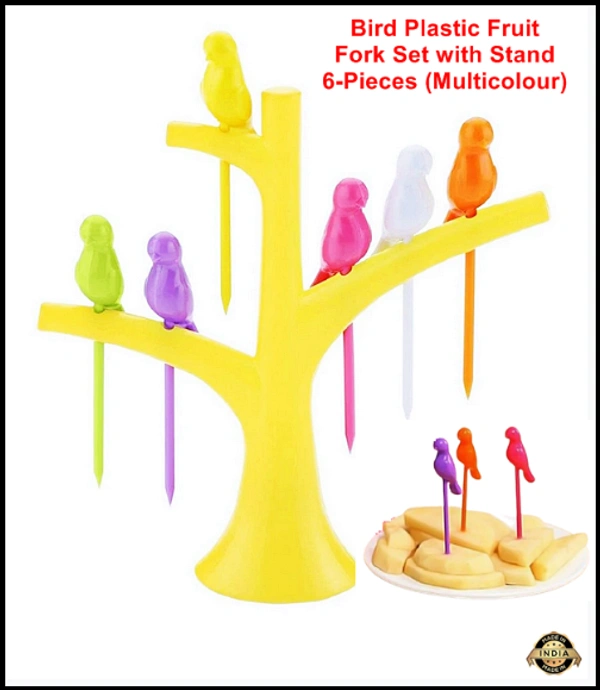 Bird Plastic Fruit Fork Pack with Stand, 6-Pieces (Multicolour)
