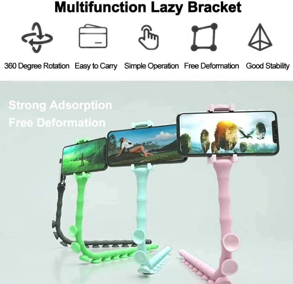 Cartoon Cute Worm Lazy Cell Phone Holder Stand 360 Rotating Bendable Flexible Suction Cup Phone Mount Clamp Creative Lazy Bracket - (Multicolor)