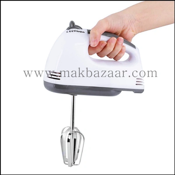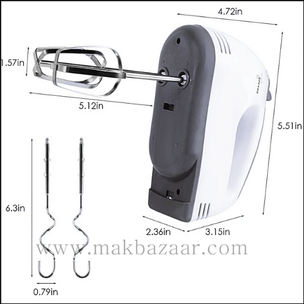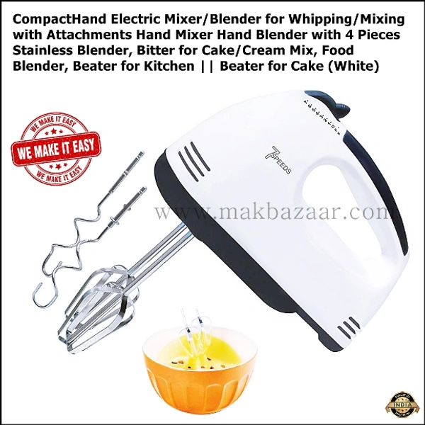 Electric Hand Mixer and Blenders with Chrome Beater and Dough Hook Stainless Steel Attachments - Speed Setting - Beater for Cake Egg Bakery (white mixer)
