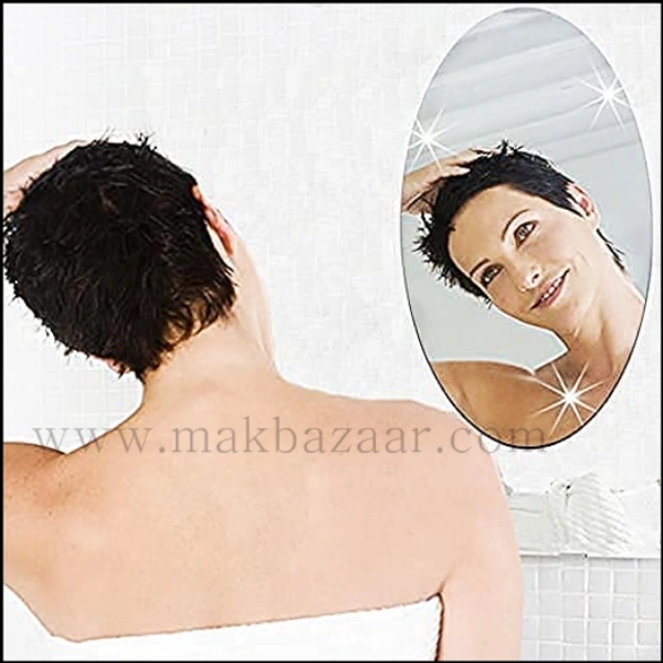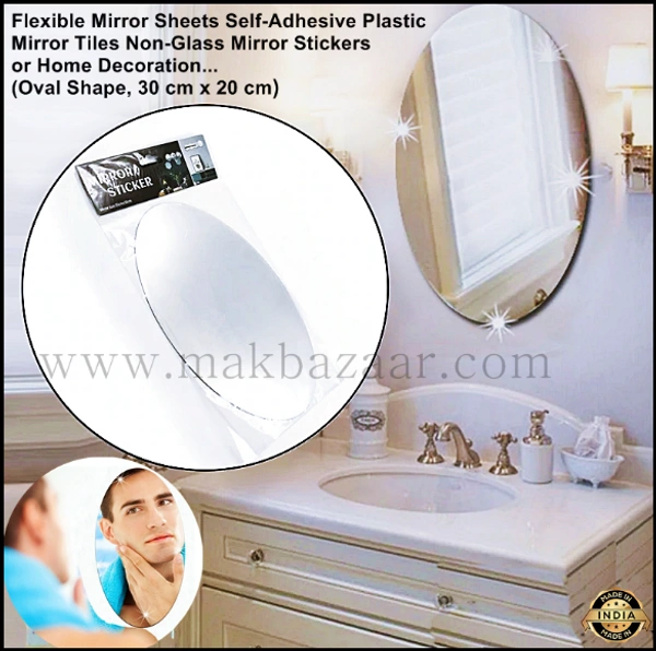 Flexible Mirror Sheets Self-Adhesive Plastic Mirror Tiles Non-Glass Mirror Stickers for Home Decoration (Oval Shape, 30 cm x 20 cm)