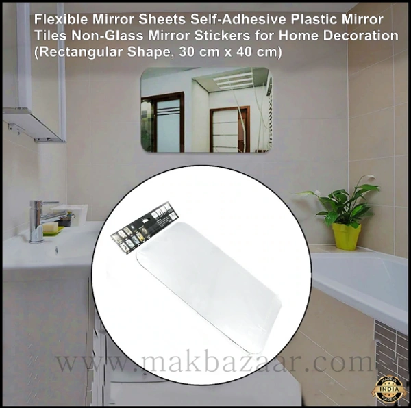 Flexible Mirror Sheets Self-Adhesive Plastic Mirror Tiles Non-Glass Mirror Stickers for Home Decoration (rectangular shape, 30 cm x 40 cm)