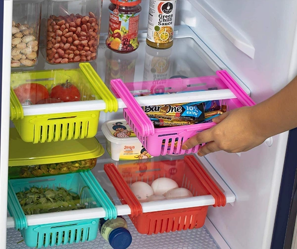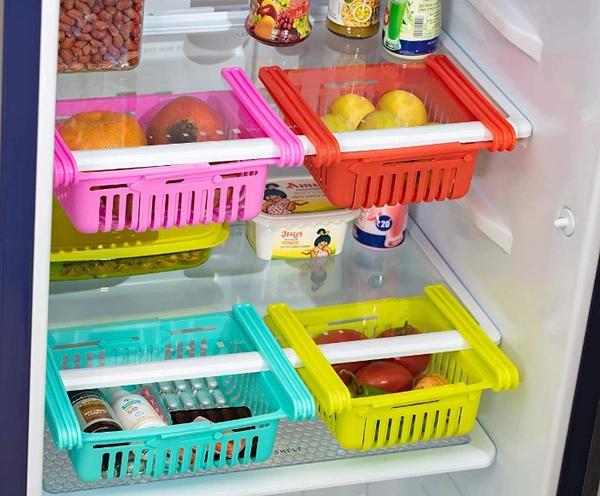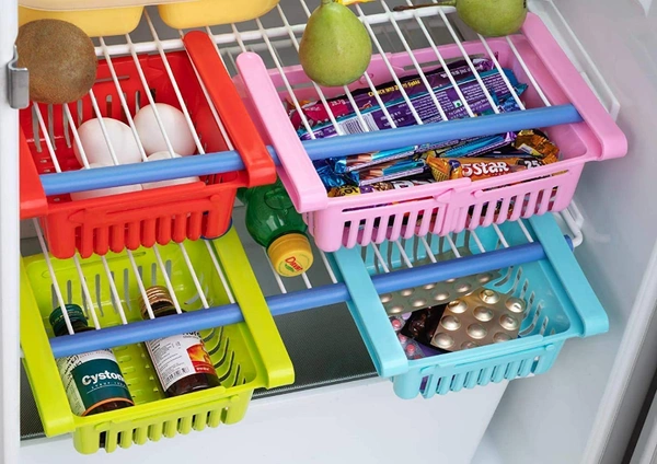 Fridge Space Saver Organizer Slide Storage Racks Shelf (4 pcs)