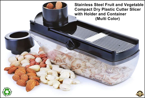 Fruit and Vegetable Compact Dry Plastic Cutter Garlic Ginger Slicer Cutter Grater with Hand Guard Holder and Transparent Container with Adjustable Stainless Steel Blade for Home Kitchen.. (Multi Color)