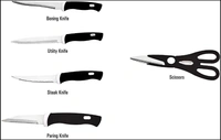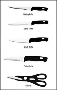 - Knives that do not need sharpening , Knives with stainless steel blades and attractive handles
