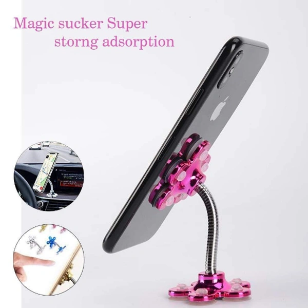 Mini Flower Shape Cellphone Holder Car & Mount Sucker Stand 360 Rotatable Multi-Angle Phone Metal Magic Suction Cup Mobile Holder Compatible with Universal Smartphones (Multi Color)