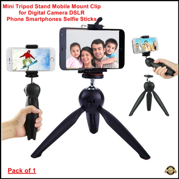 Mini Portable Fold-able Tripod Stand for Mobile Phones and DSLR and Digital Cameras with Universal Mobile Phone Holder ..(Black)