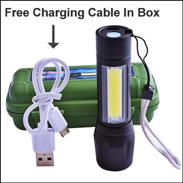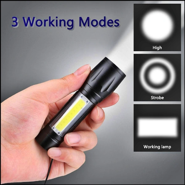 Mini led flashlight with XPE COB side light two lighting methods to meet a variety of environmental needs,With Hanging Rope designed, you can hang it anywhere. The built-in rechargeable 18650 Li-ion battery allows you to continuously use. Pull the shaft back to illuminate large areas, push the shaft forward to zoom in to use the spotlight function