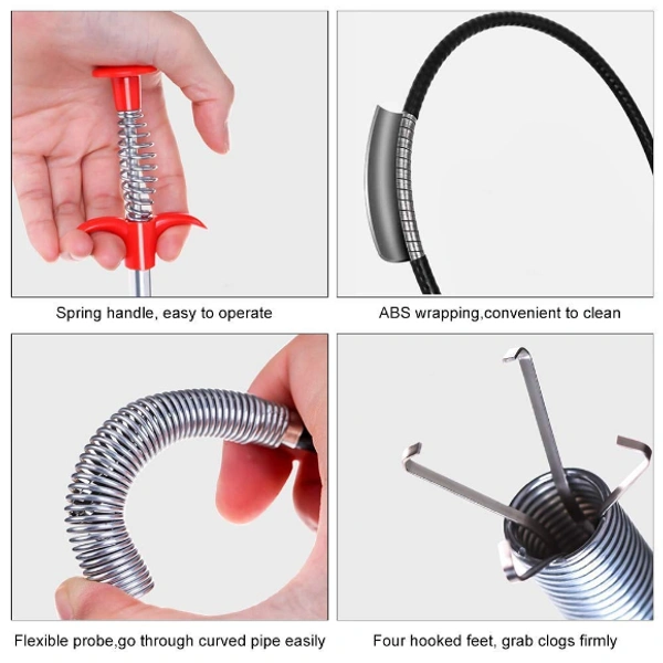 - Drain cleaning brush/spring widely used for cleaning bathrooms; kitchen; sinks; tubs; and dredging pipe; drain; sewers and other places clogged often. Multi-tooth drain snakes efficiently catch hair; food and other blockages