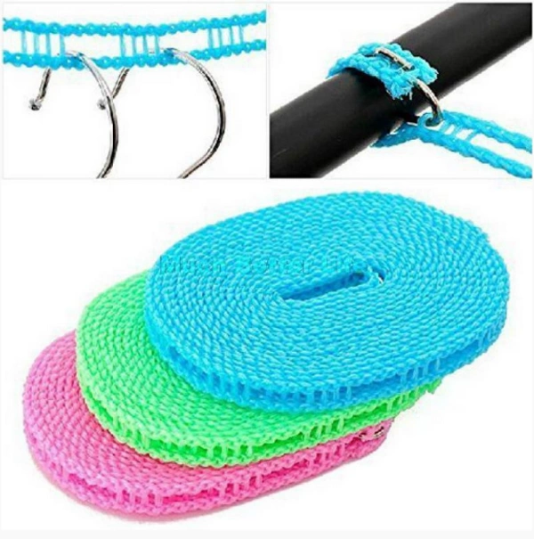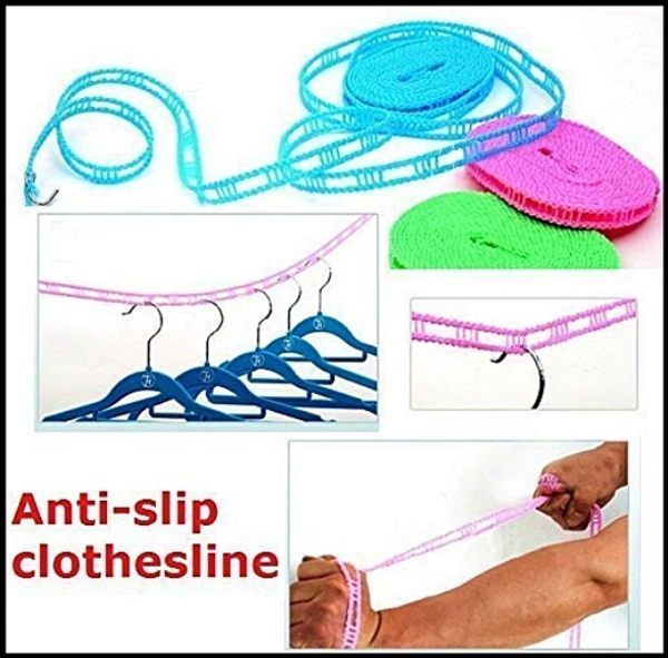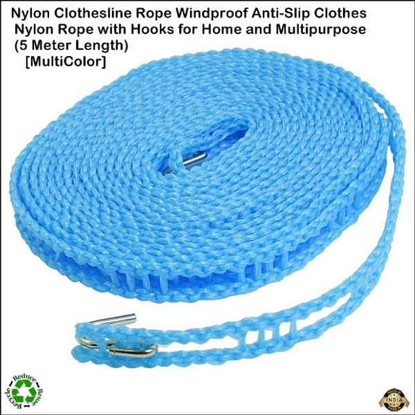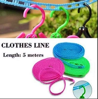 Nylon Clothesline Rope Windproof Anti-Slip Clothes Washing Line Drying Nylon Rope with Hooks 5 Meter Nylon Clothesline Rope (Muli Color)