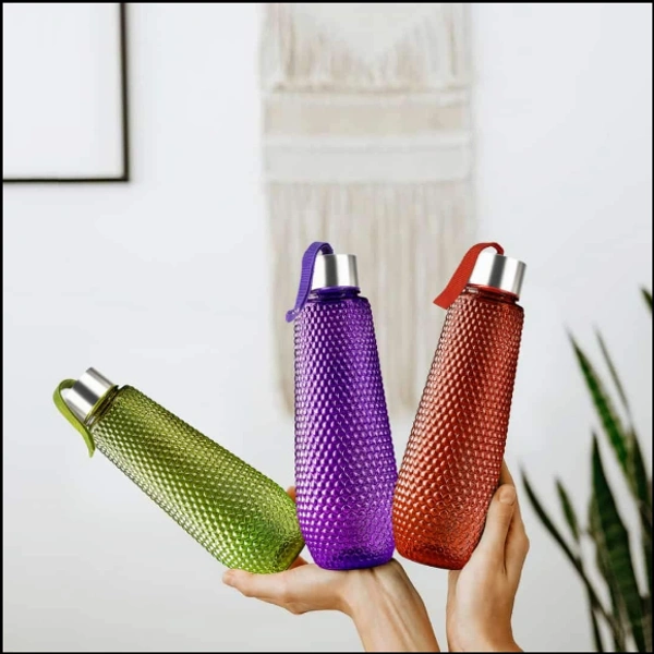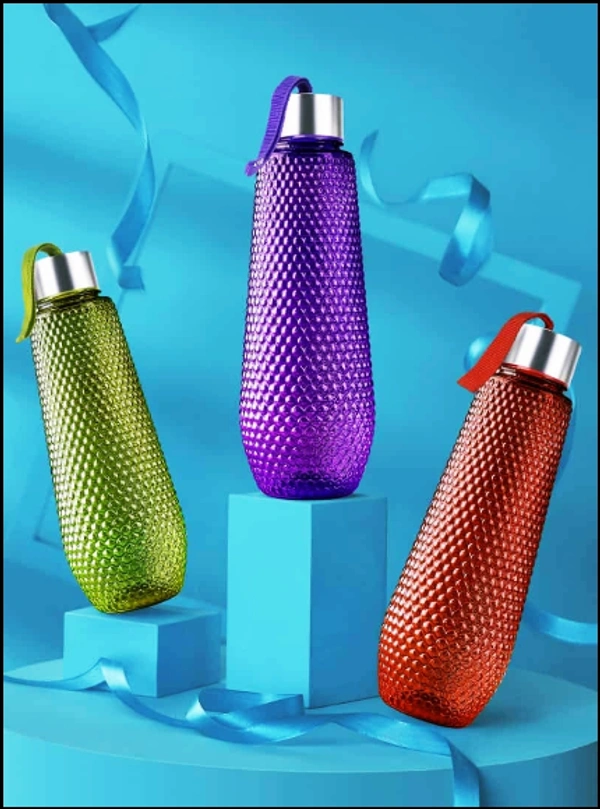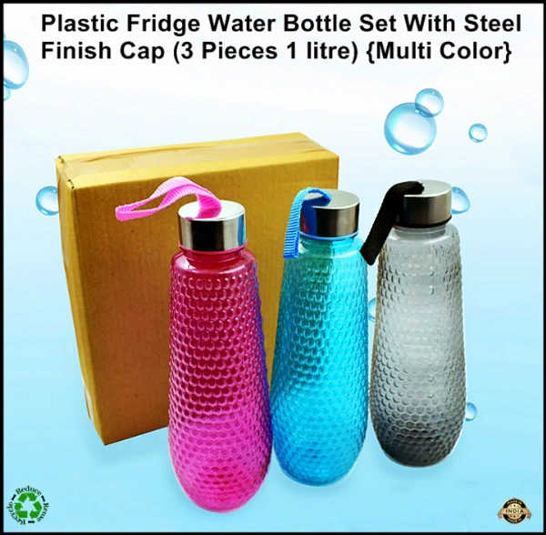 Plastic Fridge Water Set With Steel Finish Cap (3 Pieces 1 litre) {Multi Color}