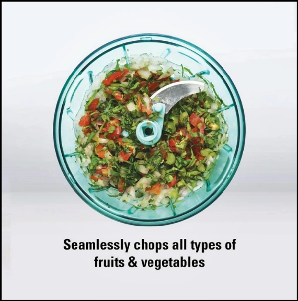 - The chopper has 3 sharp stainless steel blades that cut through vegetables easily. The number of pulls determine the size of the cuts