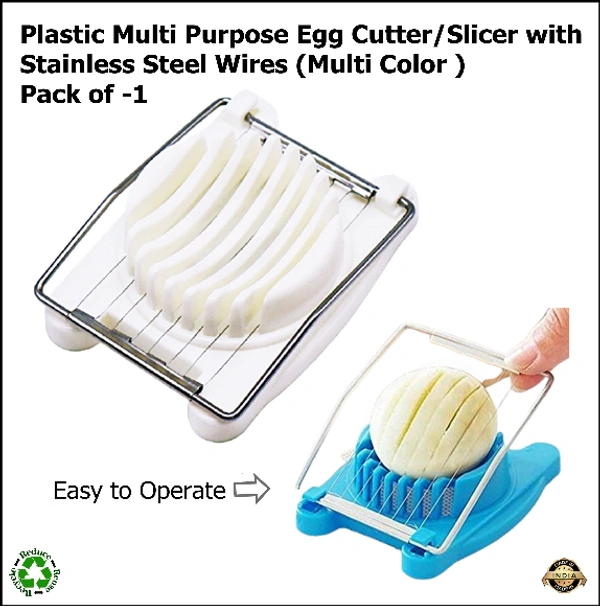 Plastic Multi Purpose Egg Cutter/Slicer with Stainless Steel Wires Egg Chopper Egg Slicer Egg Grater & Slicer.. (Multi Color) Pack of -1