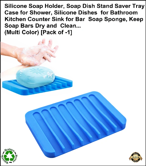 Premium Silicone Soap Holder Self Draining Soap Dishes Tray- Soap Saver for Shower, Bathroom, Kitchen, Extend Soap Life Dry & Clean. (Multicolour)