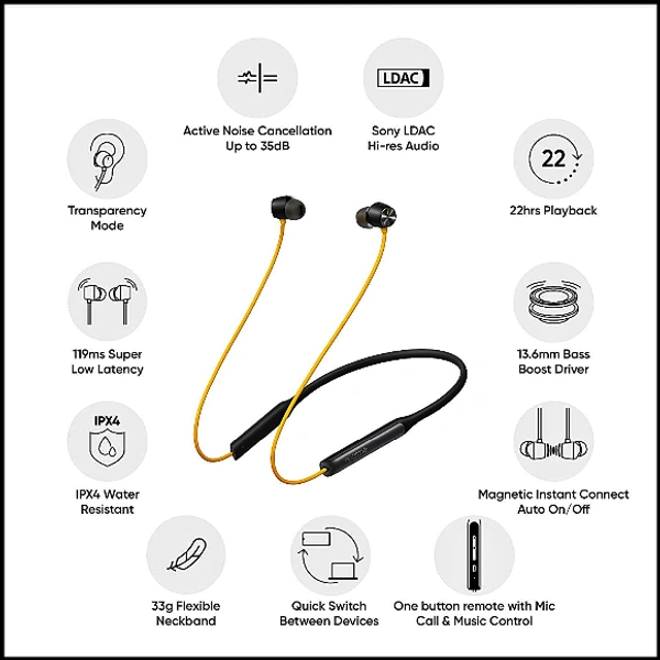 Realme Buds Wireless 2 Neo (Black) Earphones , Bass Boost+ & Magnetic Instant Connection