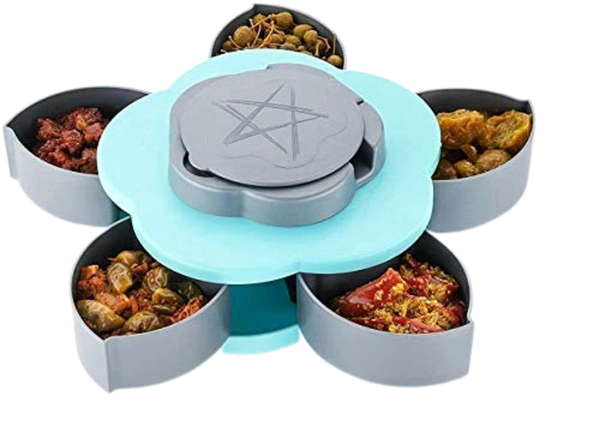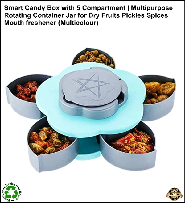 Smart Candy Box with 5 Compartment | Multipurpose Rotating Container Jar for Dry Fruits Pickles Spices Mouth freshener (Multicolour)
