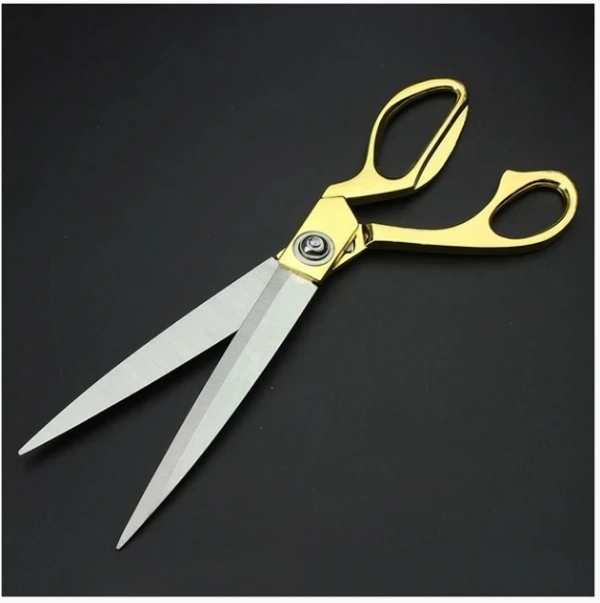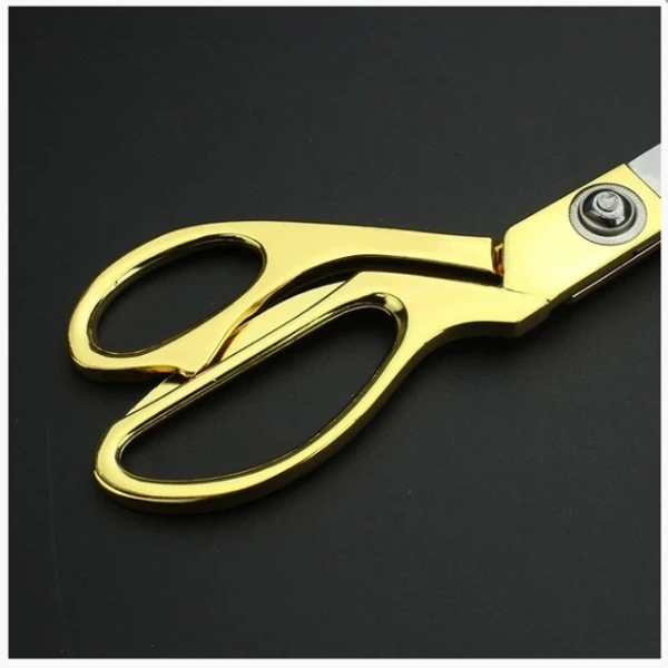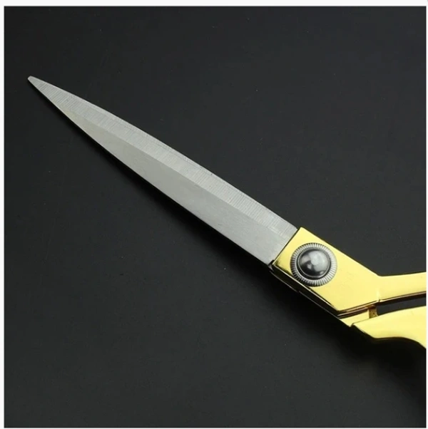 - Great dressmaking scissor. Made of High Carbon Stainless Steel Beautiful Golden Handle. Extremely sharp blades. Makes cutting easy