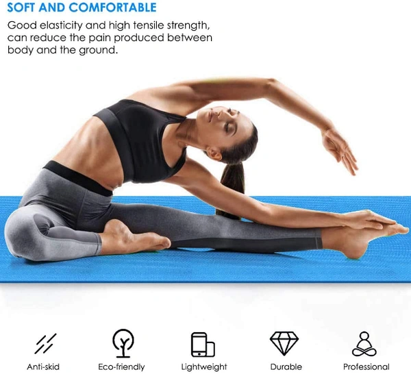 - Comfortably thick for a better work out:-180cm long 60cm wide ensures comfort for people of all shapes and sizes. With high density eco friendly material, the 6mm thick premium mat comfortably cushions spine, hips, knees and elbows on hard floors while keeps you balanced.